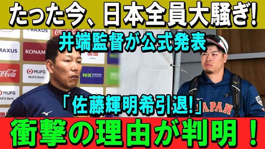 井端弘和監督が記者会見で発表した「佐藤輝明引退」の知らせは、日本中を震撼させました。この発表は、ワールドベースボールクラシックのグループステージで佐藤輝明が左手首付近に死球を受けた一件の直後に飛び出しました。侍ジャパンがチェコ代表を圧倒的な勝利で破りながらも、試合の終盤で起きた緊張感はチーム内の深い波紋を残しました。佐藤は試合直後、プレー続行の意思を示しましたが、井端監督は「本来であれば私の指示に従うべきだった」と冷静に語り、さらに選手の健康優先の判断を強調しました。このコメントは、負傷時の選手交代を巡る規律の問題を浮き彫りにし、メディアや球界全体を巻き込んだ激論を引き起こしました。さらに大谷翔平がダグアウトで感情を露わにした場面も周囲に驚きと緊張を生むことに。