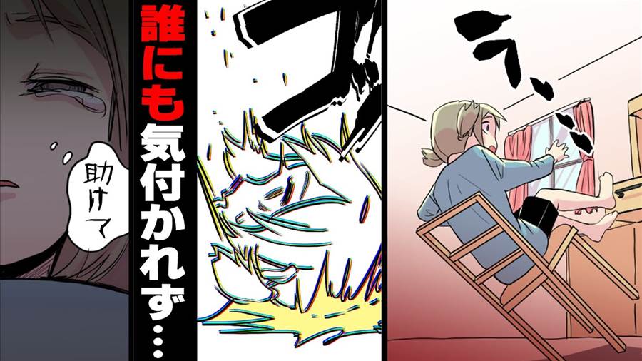 「ひっ……!」 小さいころから昆虫が大嫌いだった私。同居していた弟の“悪ふざけ”に悩まされていた。ある日、彼が私の机に昆虫図鑑を置いた。そのリアルすぎる表紙にぎょっとして、思わず身を引いた勢いで床に頭をぶつけて気絶。そして目が覚めた時、私は自分の体が動かないことに気がついた。雷が轟く嵐の中、私が倒れたことにようやく気づいた弟と両親は慌てて救急車を呼ぶか警察に連絡するかで混乱。最終的に警察のパトカーが到着し、病院へ緊急搬送された。医師によると、とっさの判断がなければ命が危なかったらしい。「不運な事故」と家族は説明したが、悪ふざけに罪悪感を覚えた弟はその後、自分の過ちを悔い改めることに。けれど、弟自身もその事件をきっかけに昆虫恐怖症になったのだった。