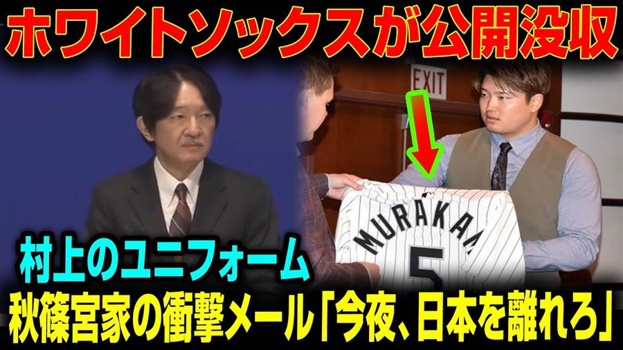 【衝撃】ホワイトソックスが村上のユニフォームを公開没収!秋篠宮家からの震撼メール「今夜、日本を離れろ」