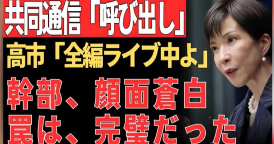 共同通信本社の大会議室は、ひとつの歴史的瞬間を迎えた。高市早苗総理が、堂々と日本メディア界の強者との対話の場に現れたのだ。共同通信側はこの場を「高市潰し」の公開処刑として用意していた。しかし、総理はその場を「微笑み」とともに制圧する。彼女の口から放たれたのは、「国民の皆さん、もう見ていらっしゃいますよ」という挑発。この一言で会場の空気は一変した。 高市総理の舞台裏は緻密に計算されていた。講演の瞬間そのものがリアルタイムでライブ配信され、事実のすべてが国民にも開示されたことで、共同通信の「編集権」という武器は無力化。幹部たちの顔に見えたのは冷や汗と恐怖だった。さらに、公開された資料には、フェイクニュース対策に関する信頼性ガイドラインが盛り込まれており、メディアの悪意ある操作を根本的に粉砕する内容が記されていた。高市総理の戦略的手腕は、一場面にしてメディア界の常識を変える衝撃の展開を見せたのである。